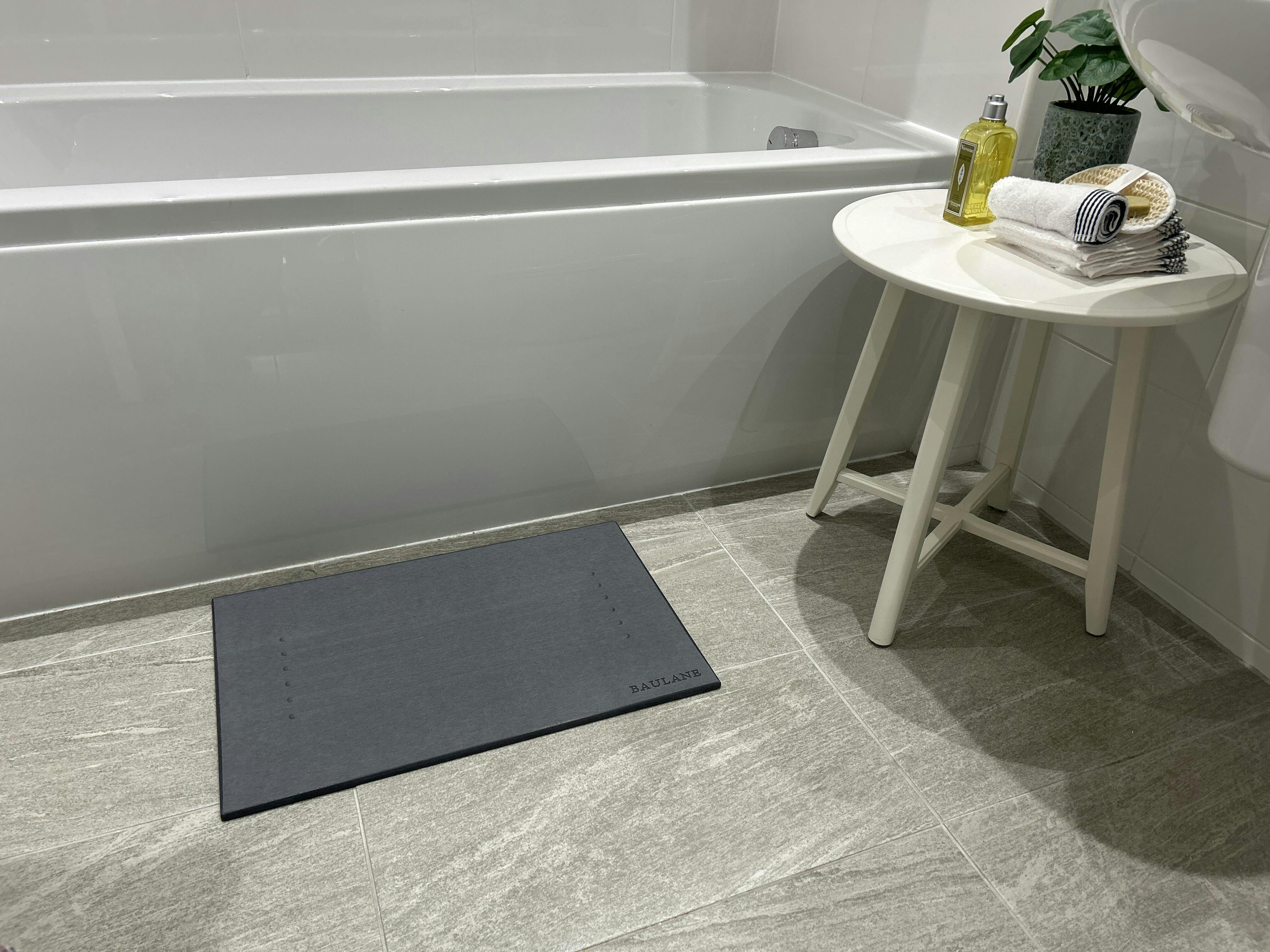 Yes. The natural mineral composition of diatomaceous earth absorbs water rapidly, helping to prevent slips and maintain a dry bathroom environment.